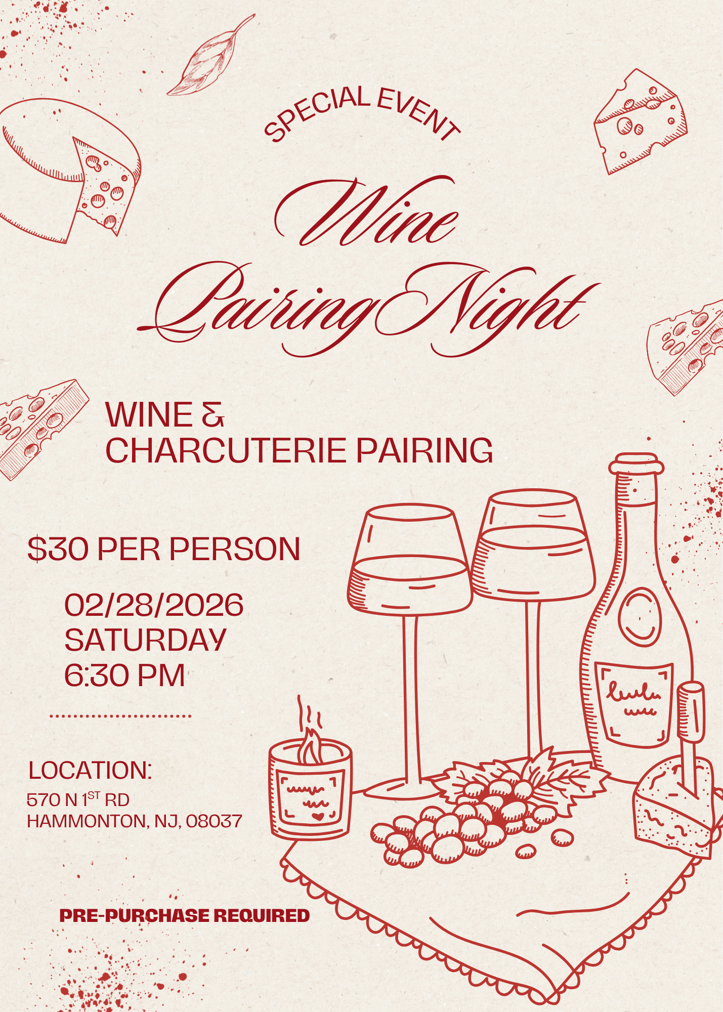 Come escape to our little oasis located in the heart of South Jersey. We welcome you to relax on our patio with a glass of wine and enjoy the tranquil view of our vineyard.